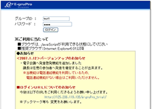 お申し込み後、お申し込み時にご入力していただいたメールアドレスに「E-グルPro URL」、「グループID・パスワード」、「初期管理者」パスワードをお送りします。